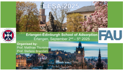 Prof. Matthias Thommes (Institute of Separation Science and Technology (TVT), Friedrich-Alexander-University Erlangen-Nuremberg) and Prof. Stefano Brandani (University of Edinburgh) are pleased to invite you to the Erlangen-Edinburgh School of Adsorption 2025, which will take place from September 2 – 5, 2025 in Erlangen (Germany).