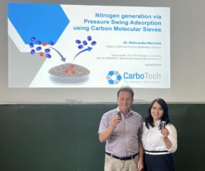 Dr. Aleksandra Marcinek, Head of R&D and Product Application Divisions at CarboTech in Essen, gave a guest lecture within the course Thermal Separation Sciences (Vertiefung Thermische Verfahrenstechnik) on Thursday, 18.07.2024. During her talk about “Nitrogen generation via Pressure Swing Adsorption using Carbon Molecular Sieves”, the students gained interesting insights into the application of PSA processes for air separation at CarboTech.